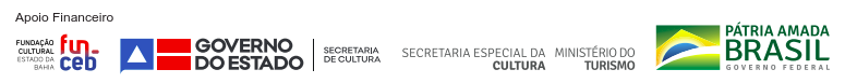 Este projeto tem apoio financeiro do Estado da Bahia através da Secretaria de Cultura e Fundação Cultural do Estado da Bahia – (Programa Aldir Blanc Bahia) via Lei Aldir Blanc, direcionada pela Secretaria Especial da Cultura do Ministério do Turismo, Governo Federal.